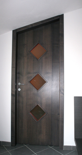 La porta nasce con tre disegni geometrici con all’interno vetro satinato.